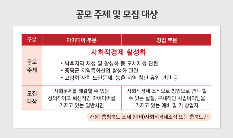 190416_증평군_사회적경제활성화_공모주제및대상_표_1