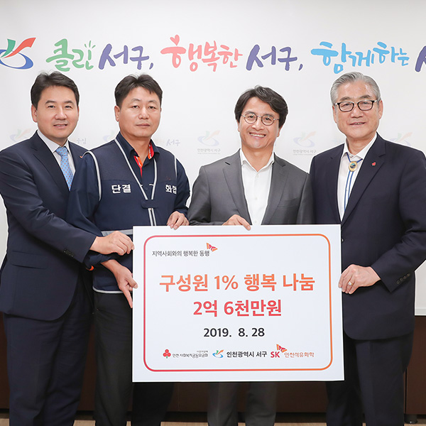 99%를 위한 1%의 나눔 – SK인천석유화학, 인천광역시 서구청에 ‘1% 행복나눔’ 기금 전달