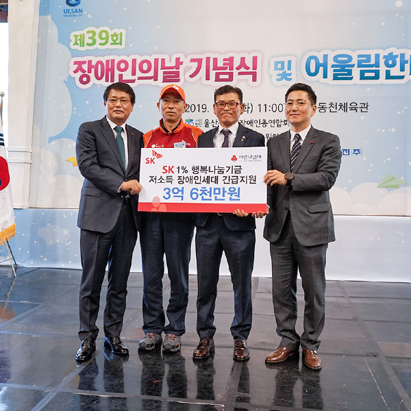 “1% 나눔으로 더 행복한 세상을 만들어요.” – SK 울산Complex 노사(勞使), 저소득 장애인 세대에 ‘1% 행복나눔’ 기금 3억 6천만 원 전달