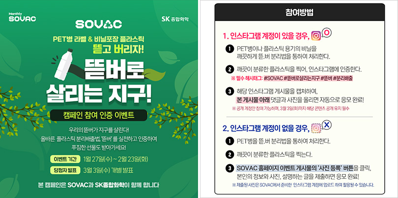 바른 PET병 사용으로 지구를 지키자! – SK종합화학과 SOVAC이 함께하는 ‘뜯버’ 캠페인