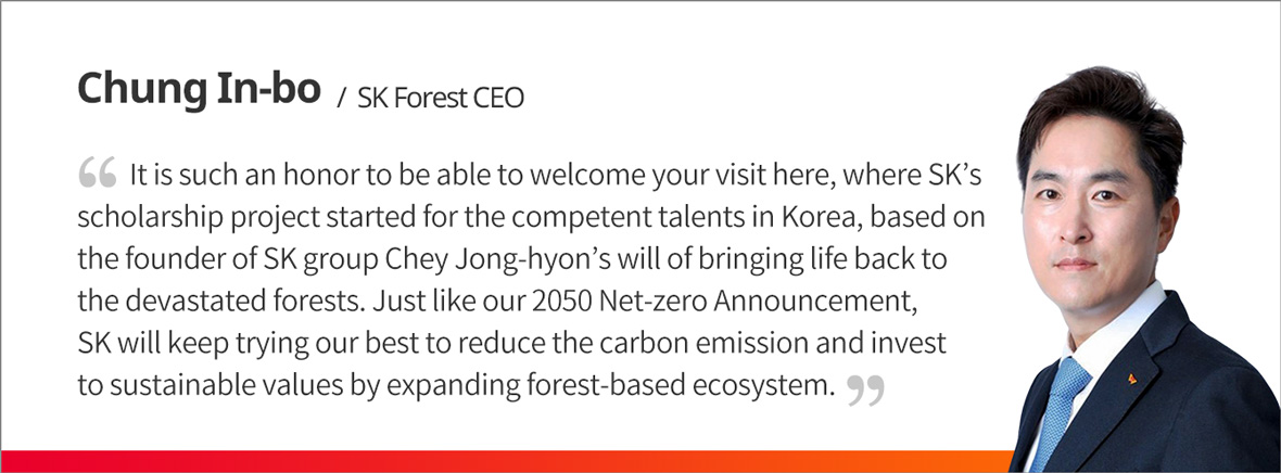 In particular, Great Melody in the Forest was held at the SK SUPEX Center located on Indeung Mountain, which represents the late former SK Chairman Chey Jong-hyon’s concerns over the ravaged forest after the Korean War as well as his aspiration and endeavors to cultivate the talented people in Korea. This place is considered the symbol of SK Group’s social contribution philosophy, which nurtures and grows people in the same way as trees are tended, and vice versa. Since 1972, SK Group has planted trees in four mountains, including Indeung Mountain, with a surface area of around 4,470 hectares in Korea. Indeung Mountain project is recognized as one of the successful forestry projects in the country and has recently been cited as an exemplary carbon reduction model.