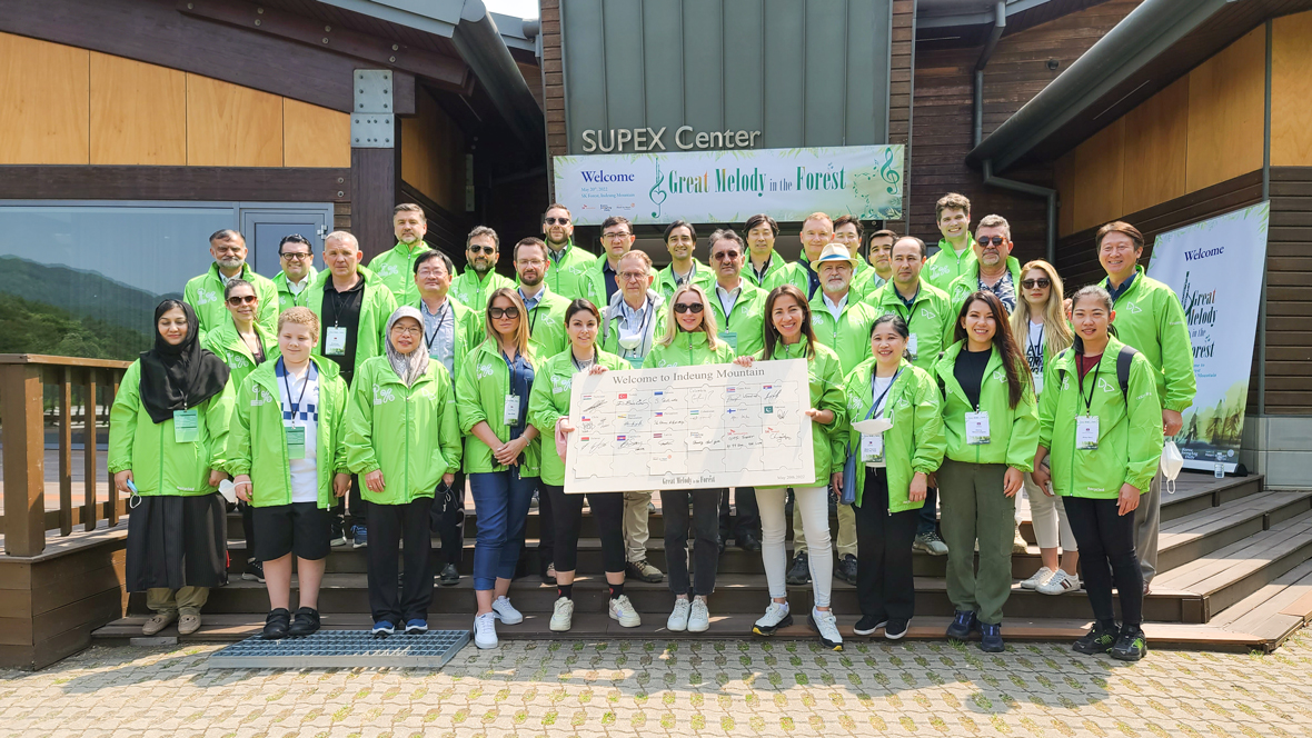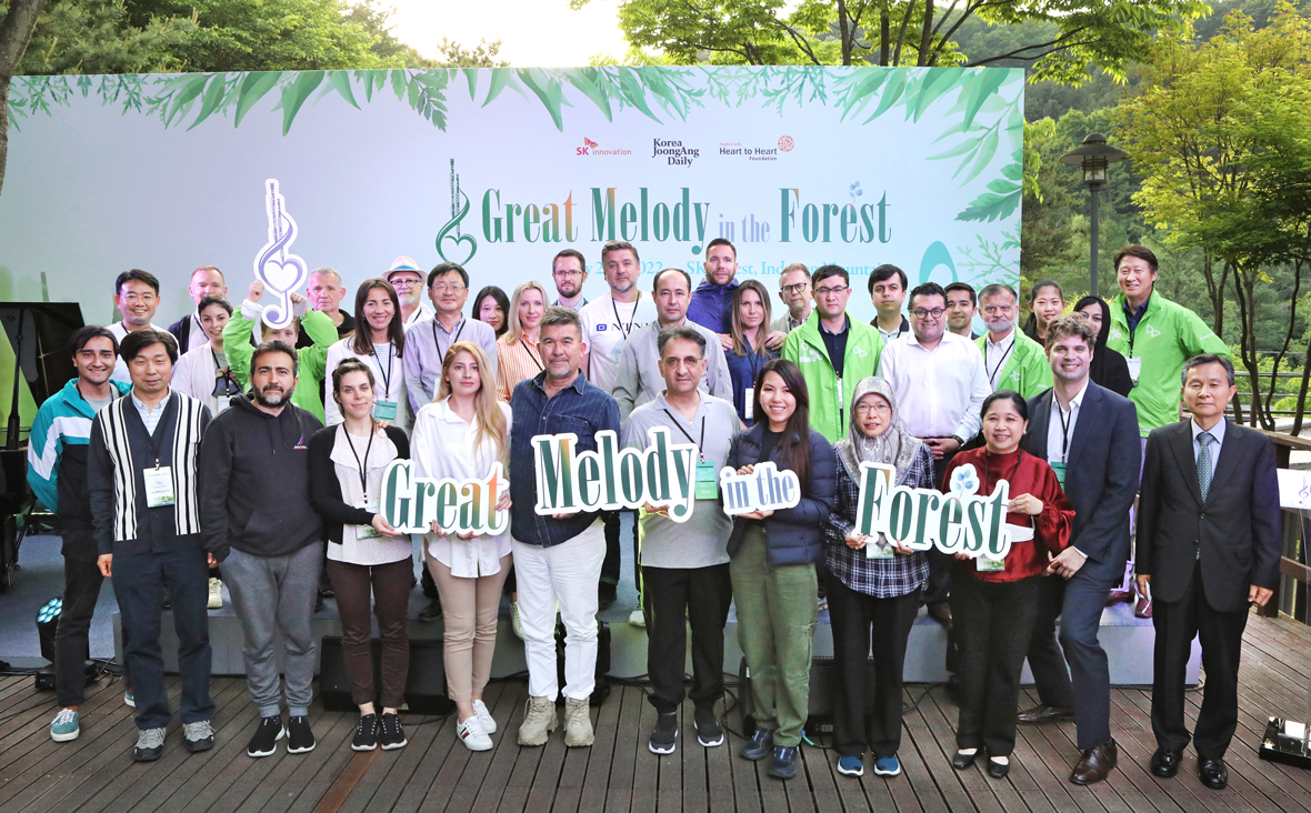 ▲ SK Innovation, Korea JoongAng Daily and Heart to Heart Foundation co-hosted “Great Melody in the Forest” event at SK SUPEX Center in Indeung Mountain, Chungbuk, South Korea on May 20, 2022. 15 Ambassador to South Korea and representatives of SK Innovation, SK Forest, Korea JoongAng Daily who attended event take a group photo at the event