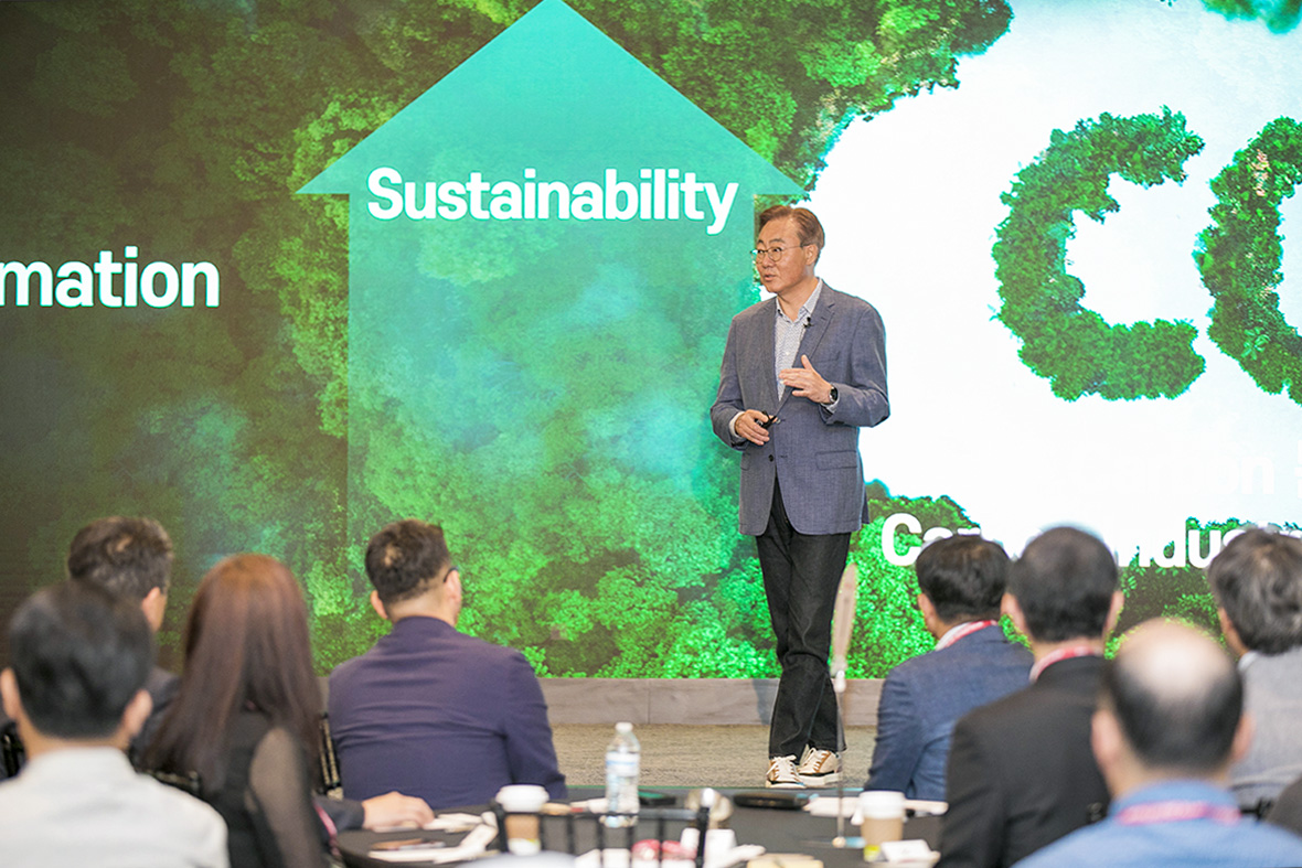 In his keynote address at the SK Innovation Global Forum in San Jose, California, USA, on June 11 (local time), Vice Chairman of SK Innovation Kim Jun introduces SK Innovation’s direction of building an eco-friendly business portfolio and its commitment to innovating business models.