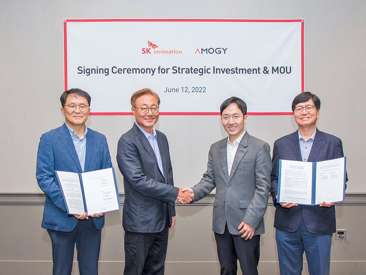 SK Innovation announced that it plans to invest USD 30 million in Amogy, the US company that produces fuel cell systems out of ammonia. SK Innovation and Amogy held a signing ceremony on June 12 (local time) in San Jose, California, the United States, wherein they agreed to cooperate on developing the ammonia-powered fuel cell system technology and expanding the market. The ceremony was attended by Kim Jun, Vice Chairman of SK Innovation, Kim Cheol-jung, Head of Portfolio Divisional Group, Lee Seong-jun, Head of Institute of Environmental Science & Technology, and Woo Seong-hoon, CEO of Amogy.