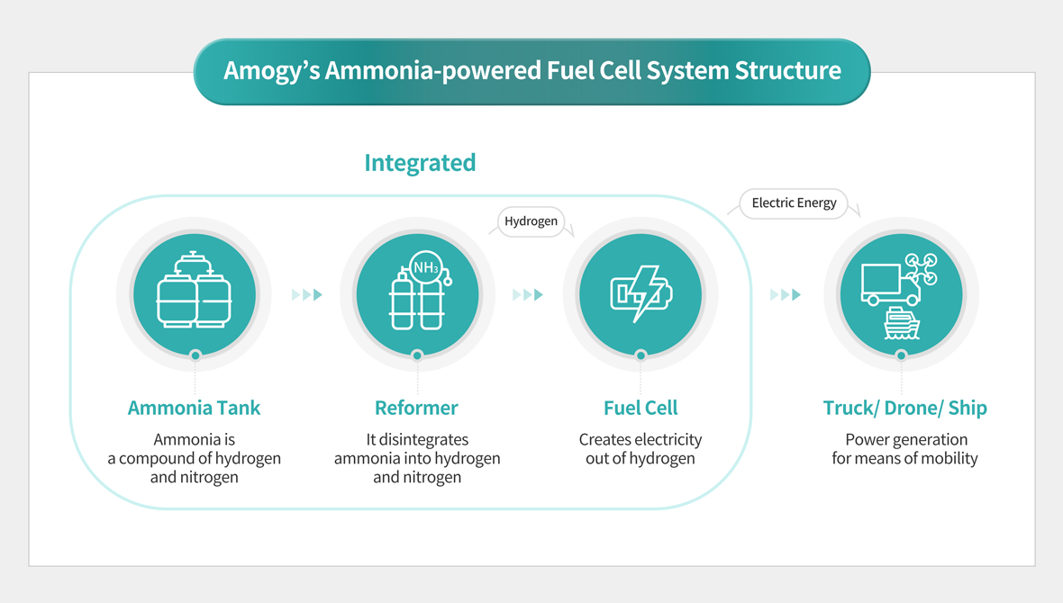 ■ Amogy developed the technology to produce hydrogen fuel cells from ammonia, the future green energy source.