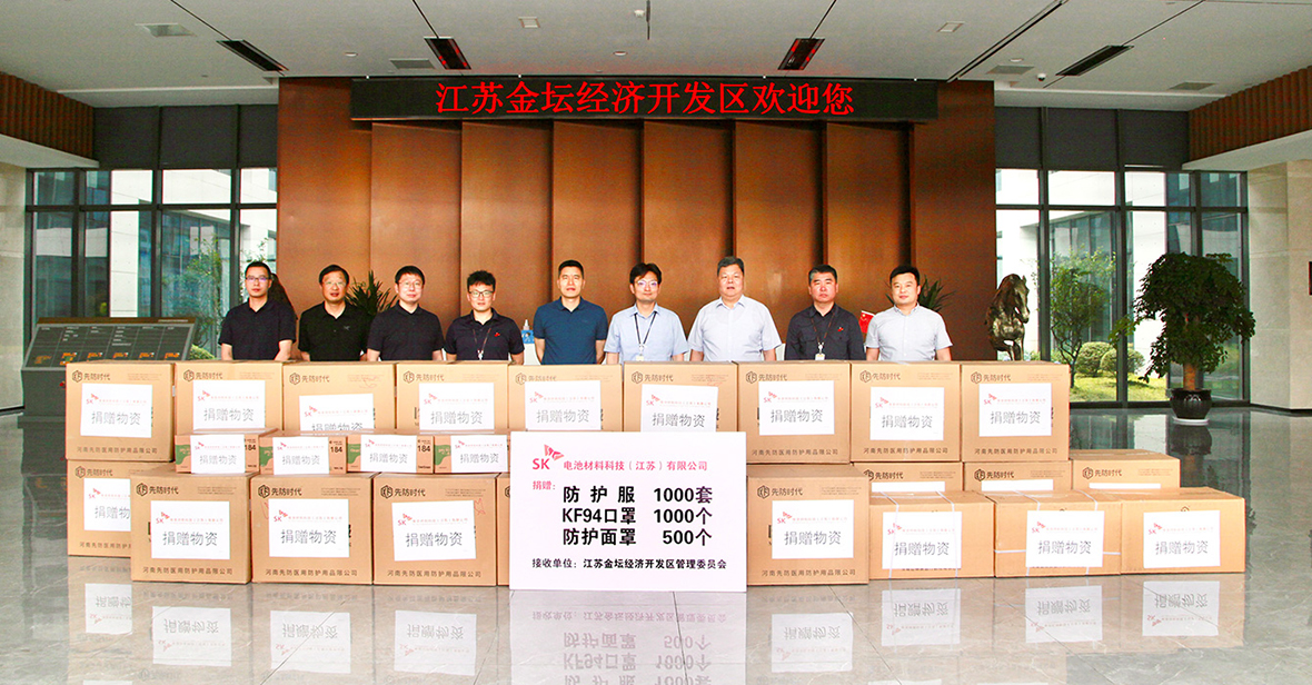 Previously on May 27, SKBMC donated 1,000 disposable masks, 1,000 suits of protective clothing, 500 face shields to Jintan District to help the local residents fight against the pandemic. Deputy Secretary of Jintan District Jiang Zhijun, Office Director Shi Yugang, Head of Investment Attraction Department Jiang Weimin, Head of Investment Support Department Chu Zhenhua, and multiple representatives from SKBMC participated at the delivering ceremony.