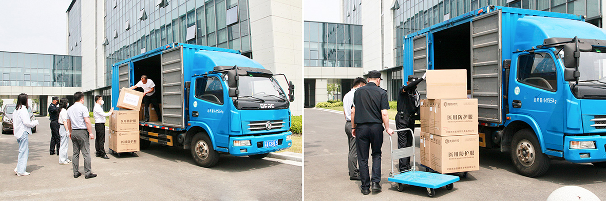 ▲ SKBMC delivered 1,000 disposable masks, 1,000 suits of protective clothing, 500 face shields to Jintan District, Changzhou, China on May 27 (local time)