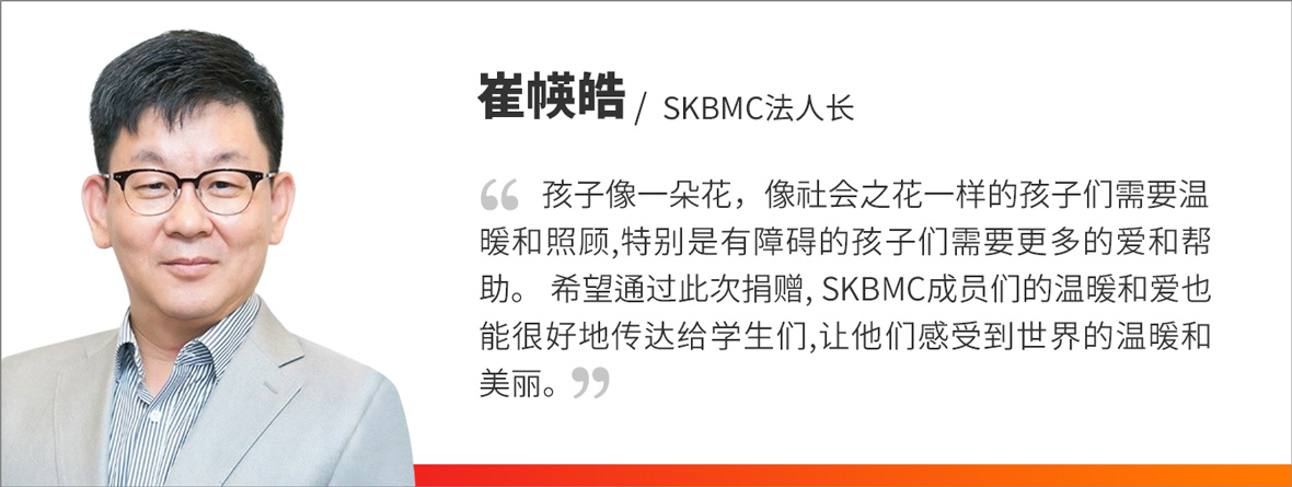 学校代表人表示:”感谢SKBMC的支持和援助,希望能够好好传达SKBMC对社会弱势群体的关爱,让他们感受到社会的温暖。”
