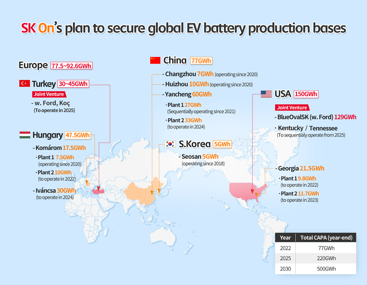 SK On also is solidifying its position in the global battery market through its own investment as well as a joint venture.