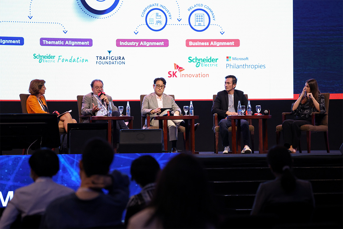 ▲ The panels of the Models of Corporate Social Impact: Being Intentional and Strategic plenary session, a part of AVPN Global Conference 2022
