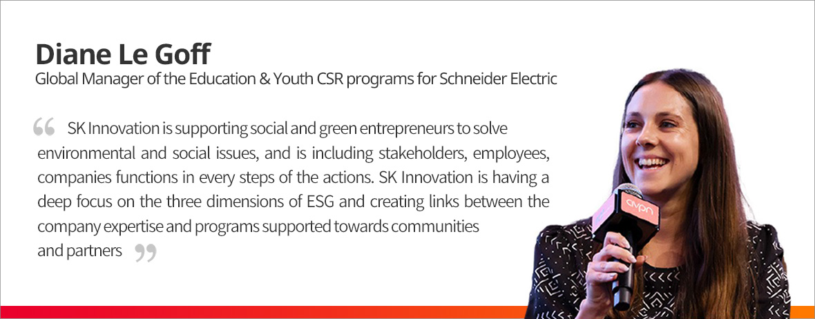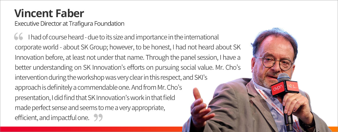 The other panels of the session in which SK Innovation participated included director-level members of social-impact-related divisions of the European Venture Philanthropy Association, Schneider Electric, Microsoft Philanthropies, and Trafigura Foundation. They shared social impact business models and their cases that respective agencies and companies have pushed forward with.