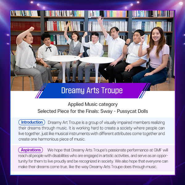 Teams advancing to the finals will compete for the championship at the 6th GMF Finals on October 4. In order to further improve each team’s performance skills and techniques that can add to the excitement on stage, professors and instructors of the social enterprise ‘Tool Music’ are providing customized lessons.