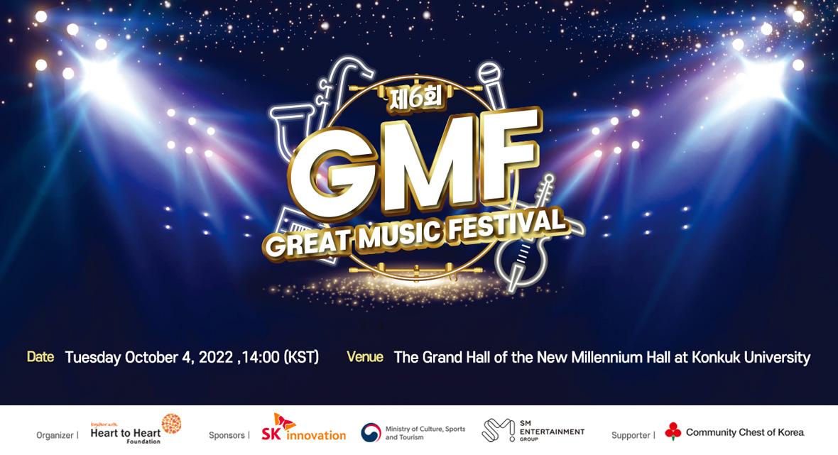 This year’s GMF, its 6th event, will be held at the Grand Hall of Konkuk University’s New Millennium Hall on October 4th. It is hosted by the Heart to Heart Foundation*, and is sponsored and supported by SK Innovation, the Ministry of Culture, Sports and Tourism, SM Entertainment, and the Social Welfare Community Chest./span>