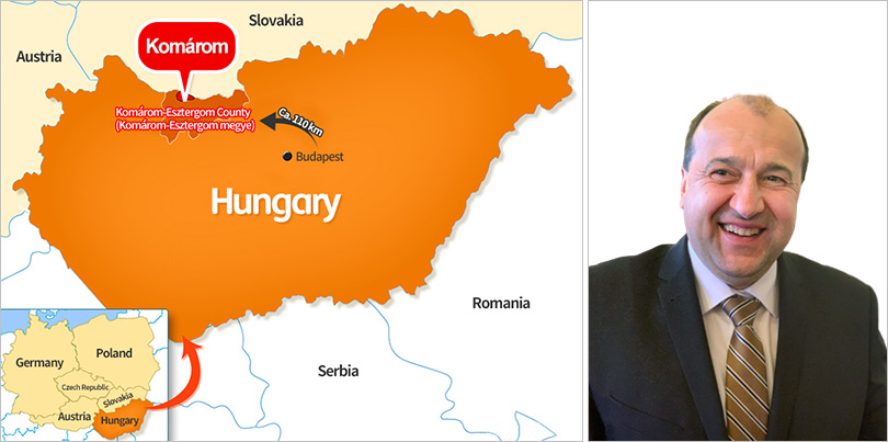 ▲(Left) Location of Komárom, Hungary / (Right) Dr. Attila Molnár, Mayor of Komárom city