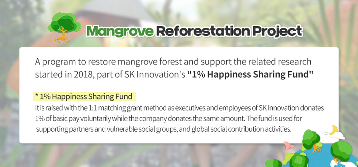 It is said that the environment we enjoy now is what we borrowed from the future. Therefore, to bring a clean and green earth to the next generations, SK Innovation will continue to carry out the Mangrove Reforestation Project, creating more environmental to respond to climate change and preserve biodiversity, as well as more social values to improve the standard of living for the local community.