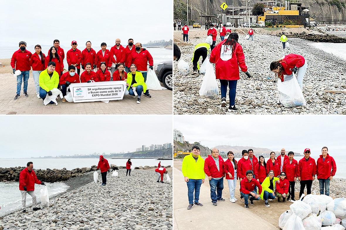 On October 21 (local time), 17 members of SK Earthon Lima Branch participated in plogging activity at Barranco Beach in Lima, Peru. While Lima branch members collected the garbage on the beach, they also distributed promotional stickers to the public in an effort to draw the World Expo to Busan. “It was great to breath in the fresh air and see how the beach get cleaner after our plogging activity,” said a member of Lima Branch after the event.