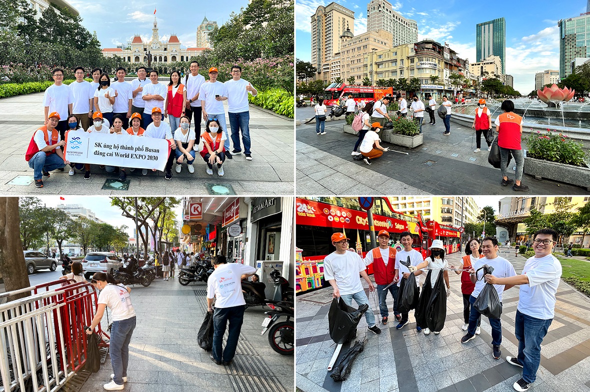 On the same day, SK Earthon Ho Chi Minh Branch held the same event near Nguyen Hue Walking Street and The Municipal Theater of Ho Chi Minh City. SK Earthon Ho Chi Minh Branch was the first among among overseas business sites of SK Innovation that participated in the EnviRun Week Season 1 held in April this year, demonstrating their strong commitment to environmental protection. This time, in addition to the plogging activity, the members also enthusiastically promoted Busan’s bid to host World Expo 2030 to the local residents.