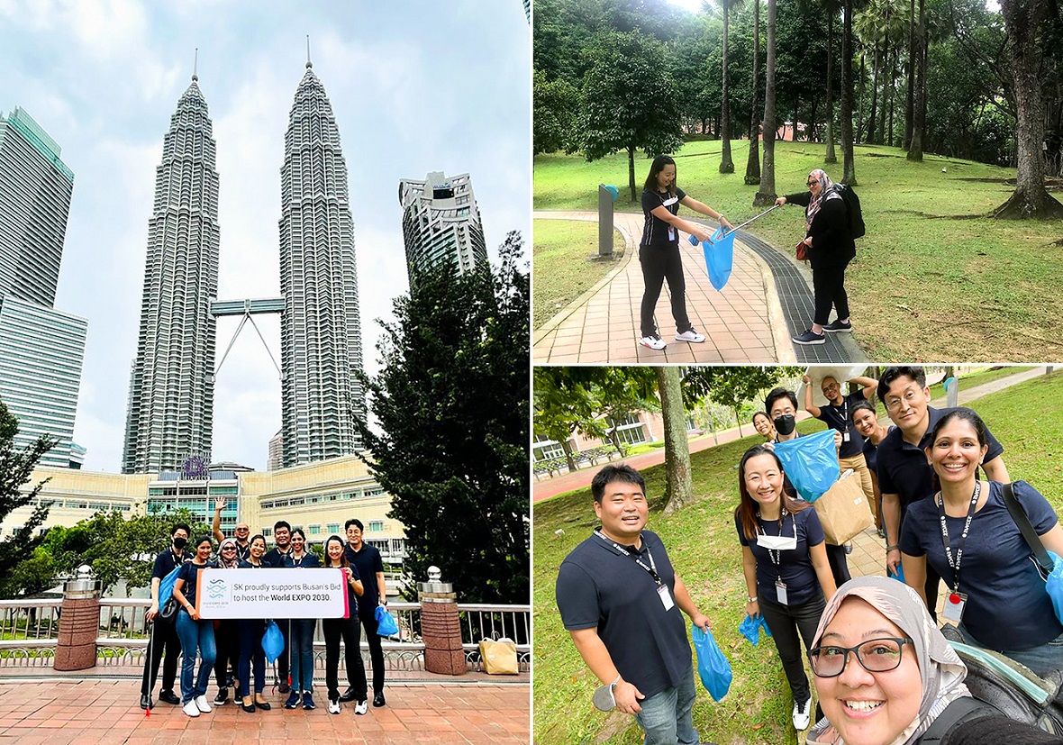 Following them, SK Earthon Kuala Lumpur Branch is the fourth among SK Earthon’s offices to join EnviRun activity. On October 25 (local time), Kuala Lumpur Branch members gathered to do plogging in the park near the Petronas Building in Kuala Lumpur, Malaysia. A member of the branch who took part in the campaign shared that, “The EnviRun event is special as it brought SK Earthon members from all over the world together in cherishing the earth’s environment and supporting Busan’s bid for World Expo.”