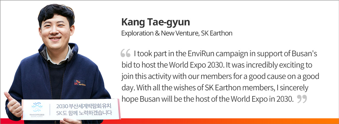 SK Earthon members also conducted a promotional activity to support Busan’s bid for the World Expo, and they realized how crucial it is for people to take part in environmental protection to create a cleaner earth through this EnviRun activity.