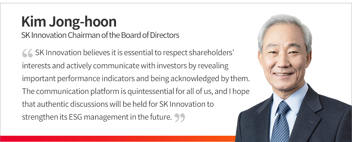 During the meeting, SK Innovation deliberated on ESG requirements from key external and internal stakeholders and committed to pursuing and executing them systematically. “We will further bolster the specialty of SK Innovation’s Board of Directors and expedite our implementation of the Financial Stories to continue elevating our corporate value,” stated SK Innovation Chairman of the Board Kim Jong-hoon.