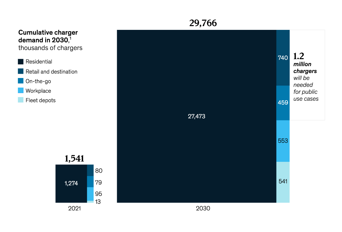 ▲ McKinsey’s forecast of cumulative charger demand in 2030. Source: McKinsey