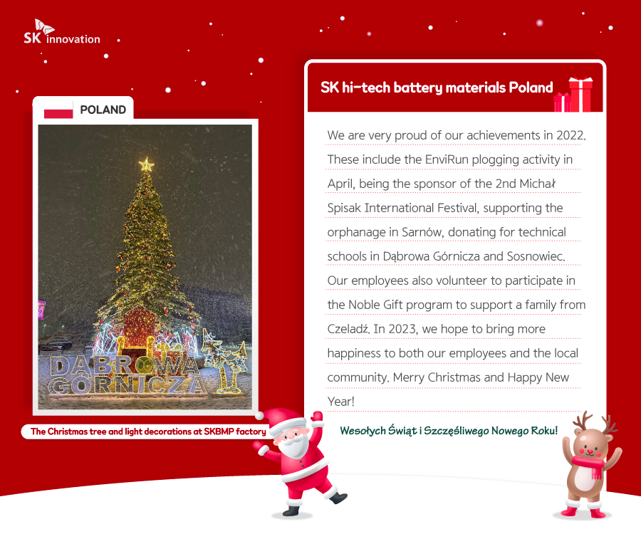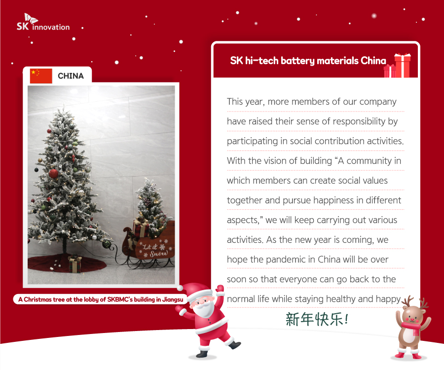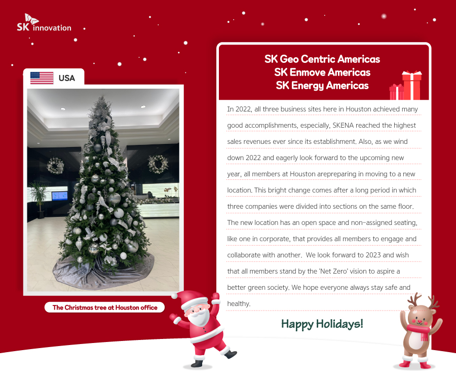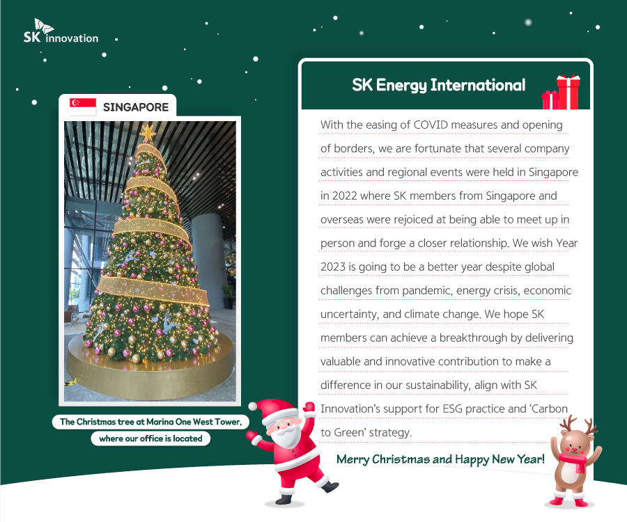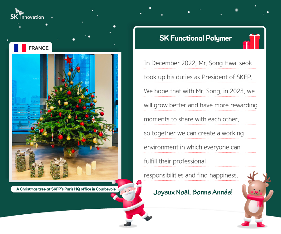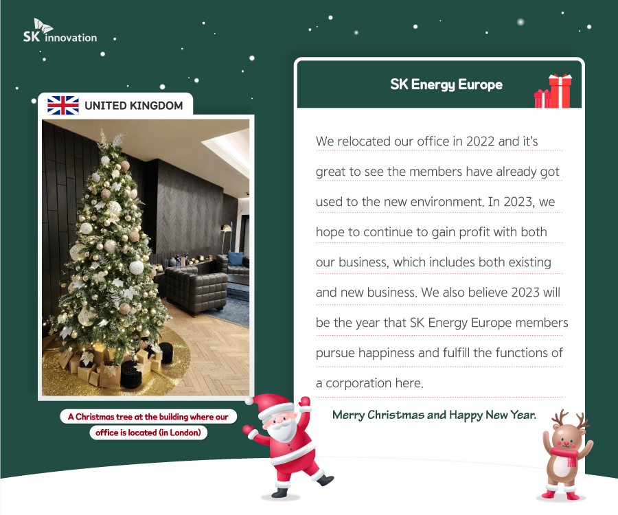 Despite many challenges, in this year, SK Innovation members across the world have achieved many positive outcomes together. To bid farewell to 2022 and welcome 2023, they have shared with SKinno News various messages attached with photos of the Christmas trees at their offices.