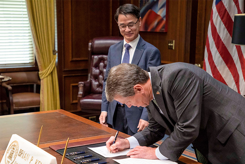 ▲Governor of Georgia Brian Kemp and President of SK Battery American Junho Hwang at the signing ceremony on June 25