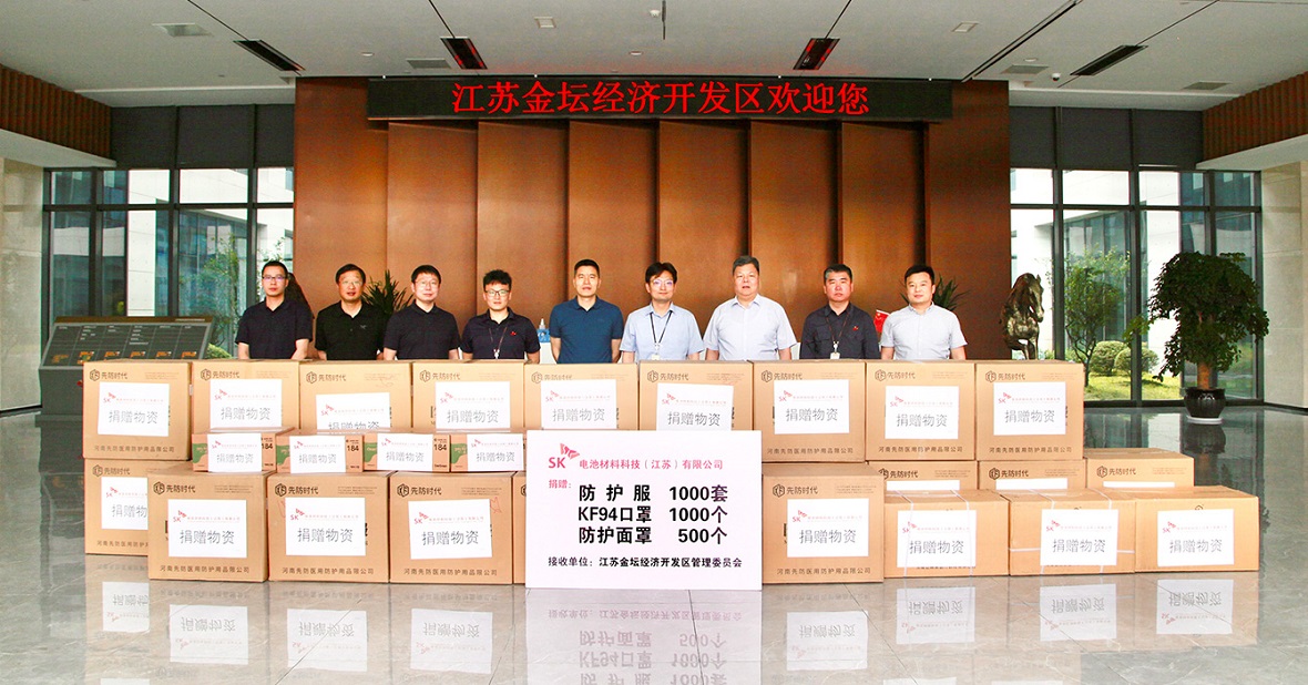 ▲ 今年5月,SKBMC为江苏省常州市金坛经济开发区政府捐赠了防疫物品,包括1000个一次性口罩、1000套防护服和500个防护面罩。