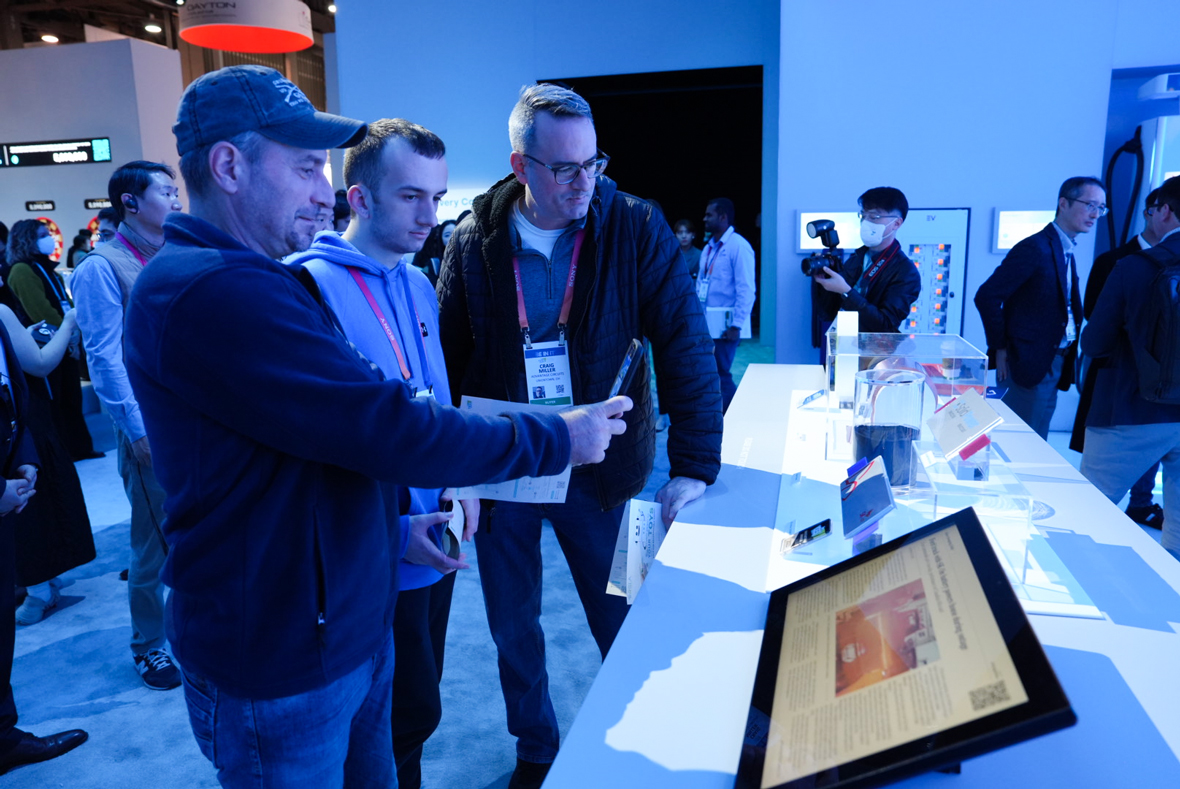 (Photo 2) Visitors are taking pictures of SK On’s SF battery, which won the “Best Innovation Award” at CES 2023, in Las Vegas, on January 5 (local time).
