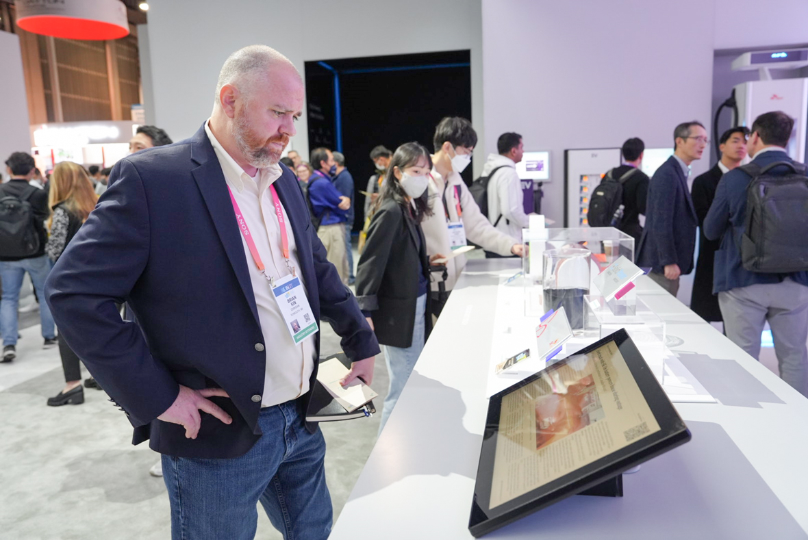 (Photo 3) A visitor is watching SK On’s SF battery, which won the “Best Innovation Award” at CES 2023, in Las Vegas, on January 5 (local time).