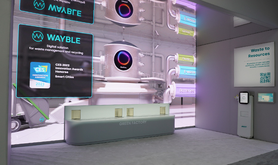 In the third corner “Waste to Resources”, SK Geo Centric, SK Ecoplant, and SKC showcase SK’s other innovative technologies to achieve Net Zero, including various ways to recycle waste resources such as ▲ Urban oil fields (recycling plastic), ▲ Urban mines (e-waste recycling), and ▲ Battery Metal Recycling (BMR). Visitors can take a glimpse of SK Group member companies’ efforts to create a virtuous cycle of resources that protects the environment by recreating resources from used up products and waste.