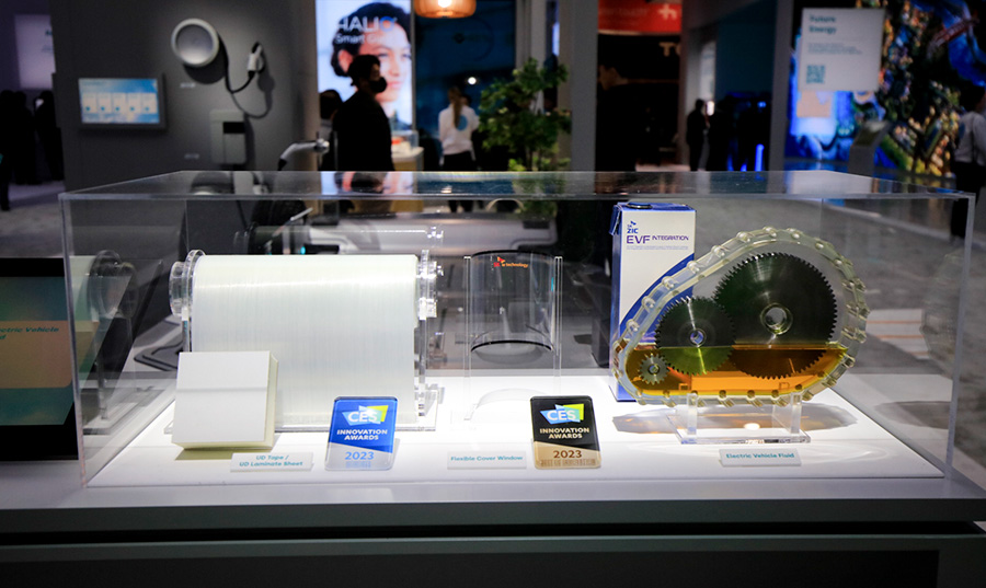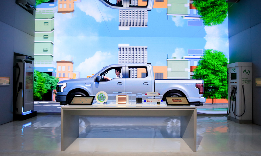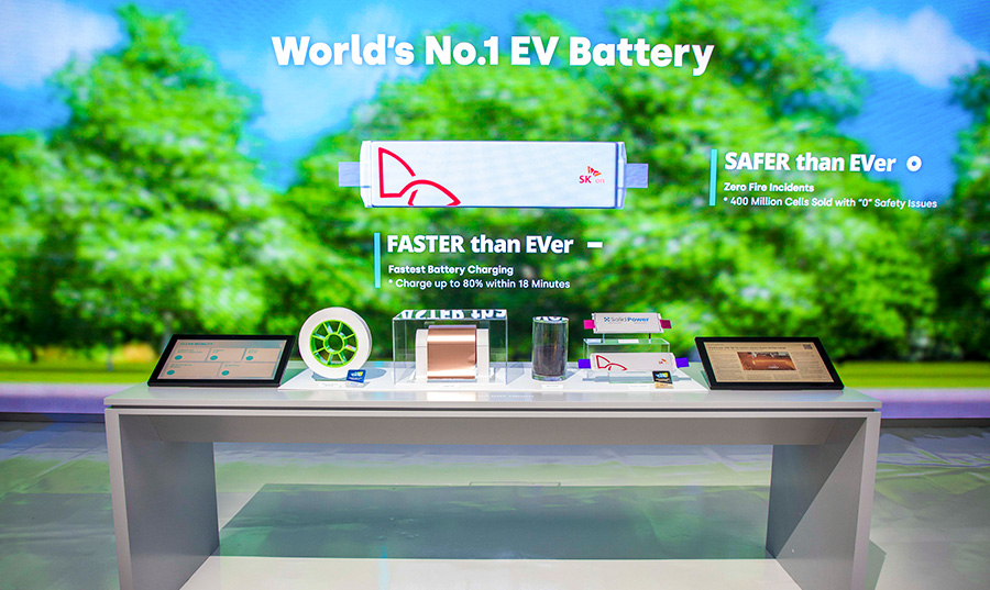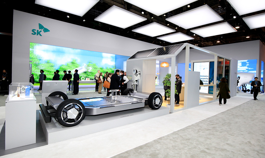 Moreover, visitors will find the all-solid-state battery cell developed by SK On’s partner Solid Power, the S-Pack that applies SK On’s cell-to-pack (CTP) technique, and the NCM9+ cell – an upgraded version of SK On’s NCM9. NCM9 is the battery cell that SK On sucessfully mass-produced for the first time in the world. Other items of Clean Mobility corner also includes SK IE Technology’s self-developed Lithium-ion Battery Separator (LiBS), which is an essential material that determines the safety and performan of lithium-ion battery cells; SK IE Technology’s FCW (Flexible Cover Window), the first product of SK that ever won Best of Innovation at CES Innovation Awards along with the SF Battery; and SK Geo Centric’s UD (Unidirectional) Tape, a lightweight car materials; and SK Enmove’s EVF (EV Fluid) that cools down electric motors, reduction gears and other parts quickly while cutting off unnecessary electrical flows inside drivetrains.