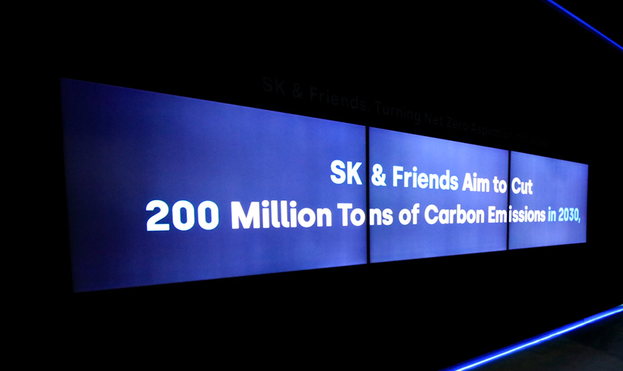 SK plans to reduce approximately 100 million tons by 2030 by improving process efficiency, renewable energy use expansion, fuel conversion, and forestation projects. It aims to further reduce approximately 100 million tons by promoting green technologies and projects. In this zone of the exhibition, visitors can also find out about the Friends that are on the Net Zero journey with SK.