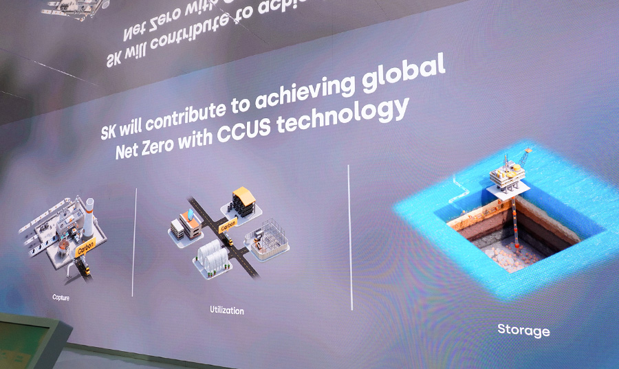 In the sixth corner “Future Energy,” the green future energy value chain that SK intends to implement through CCUS and renewable energy technologies is depicted through a 3D graphic video. CCUS stands for “Carbon Capture, Utilization, and Storage,” which refers to a technology that collects and utilizes carbon emitted in the atmosphere or stores it safely and permanently. Recently, SK Earthon, a subsidiary of SK Innovation’s oil development business, has been focusing on CCUS.