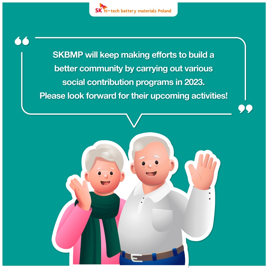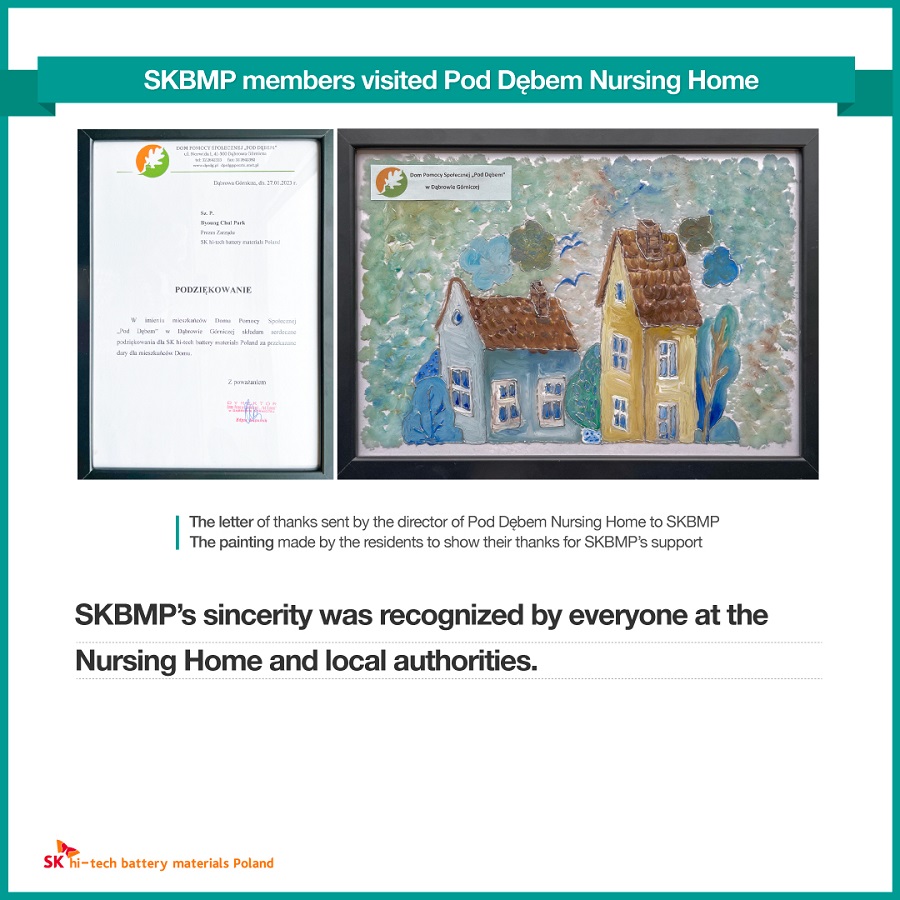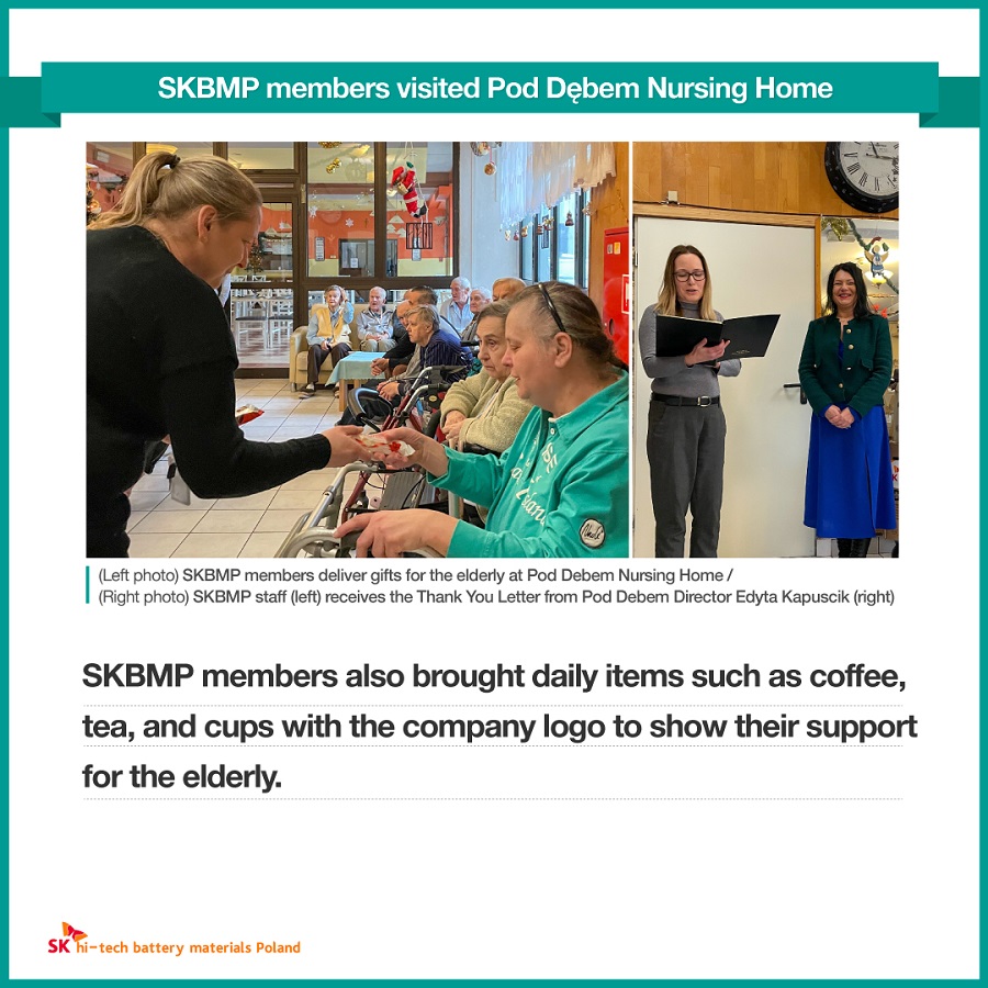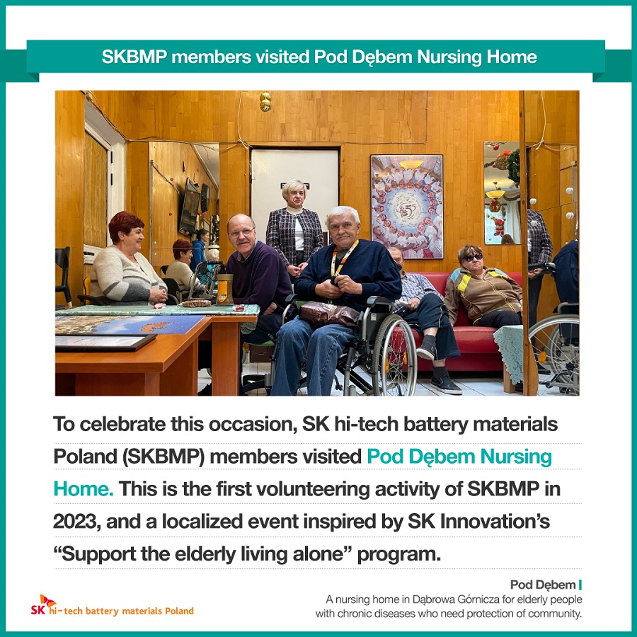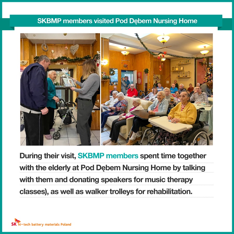 On January 27 (local time), SK hi-tech battery materials Poland (SKBMP) members started their first social contribution activity in 2023 by visiting Pod Debem Nursing Home in Dąbrowa Górnicza, where the company is located.
