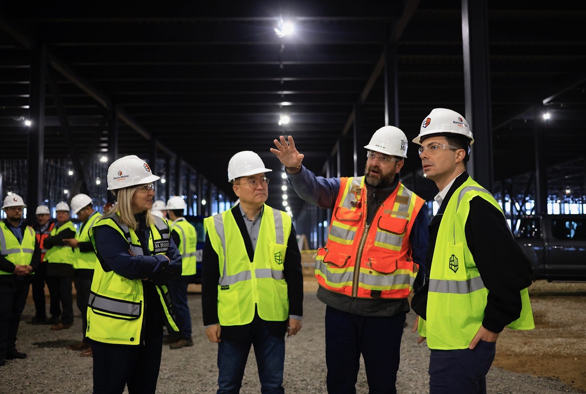 (Photo 1) (From left) Ford vice president Lisa Drake, BlueOval SK CEO Rhee Jong-han (Robert Rhee), and local construction staff toured BlueOval SK Battery Park in Kentucky on March 3 (Kentucky local time). Photo by U.S. Department of Transportation