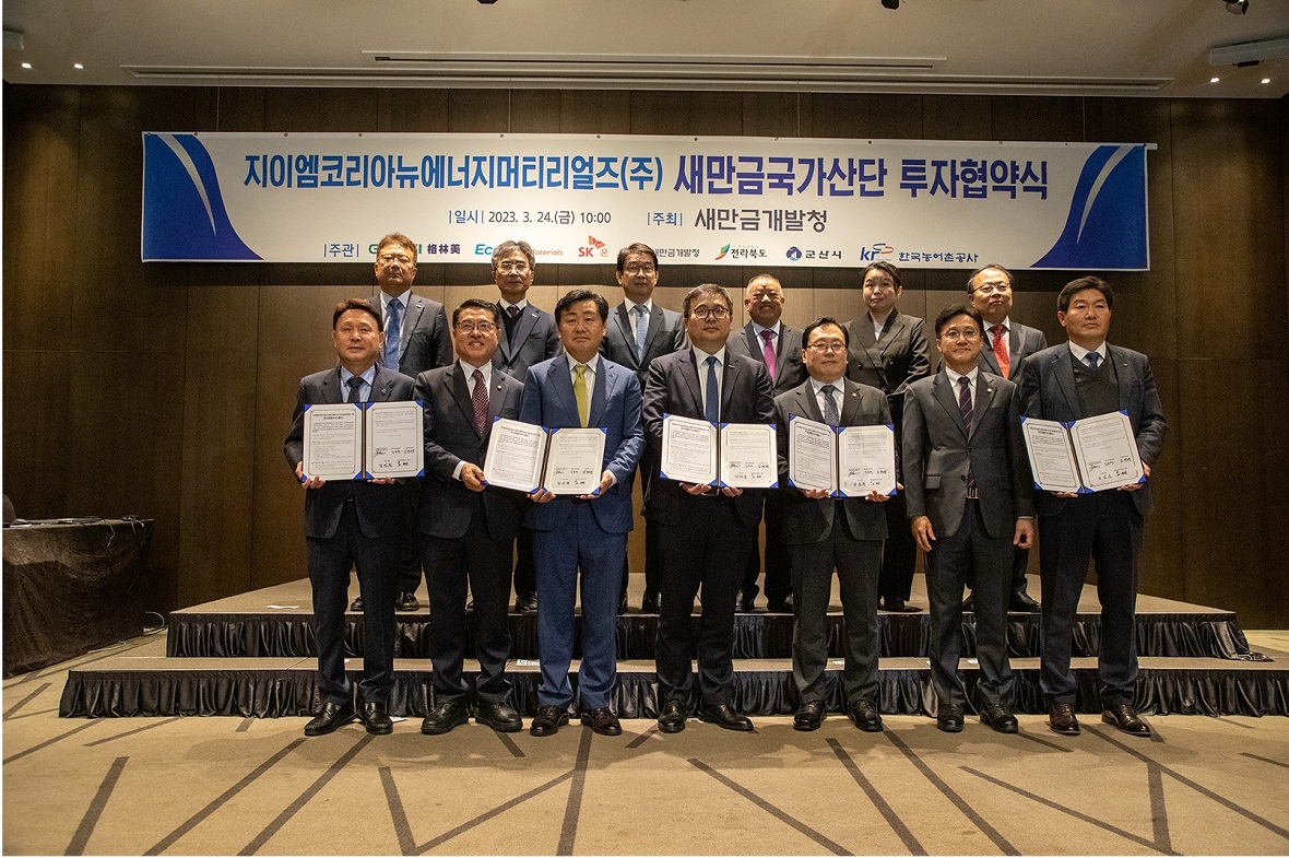 The three companies’ joint venture will sign an investment agreement on March 24 at Ramada Gunsan Hotel, South Korea. The signing ceremony will be attended by CEO of EcoPro Materials Kim Byung-hun, Chairman of GEM Xu Kaihua, Chief Administrative Officer of SK On Choi Young-chan, member of the National Assembly Shin Young-dae, Governor of Jeollabuk-do Kim Kwan-young, Gunsan Mayor Kang Im-joon, and Director of the Saemangeum Development and Investment Agency Kim Kyu-hyun.
