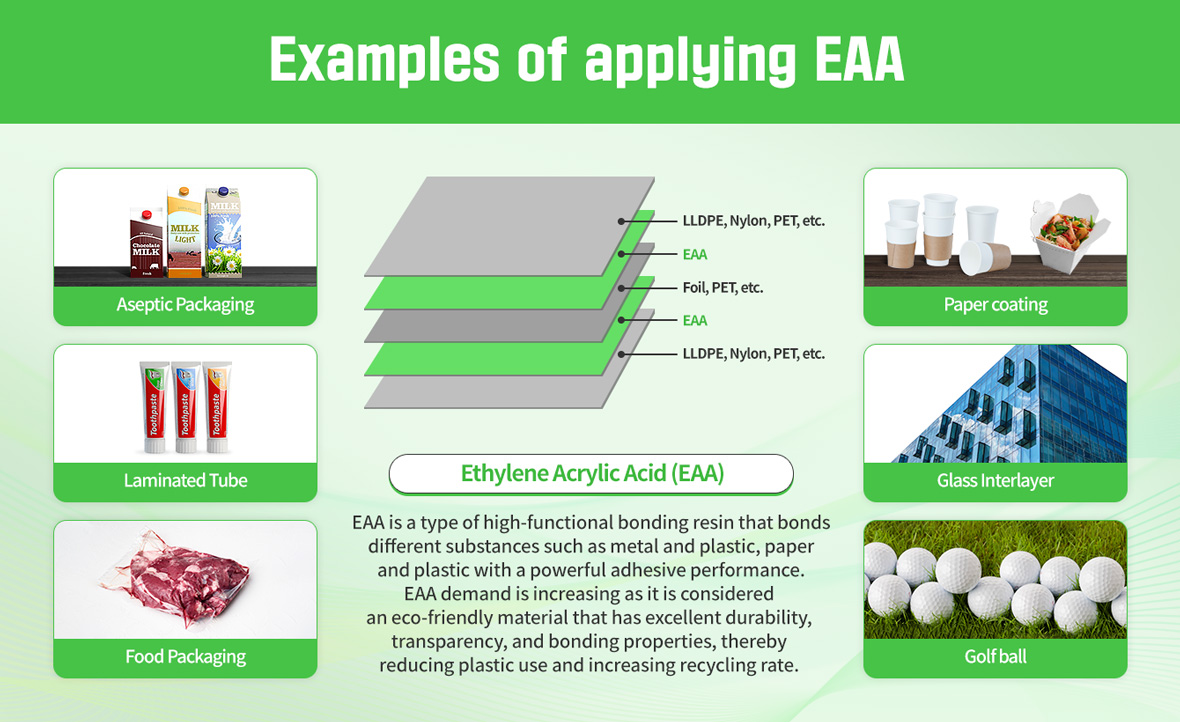 Furthermore, EAA is becoming increasingly useful in various industries due to its excellent performance, including sterilized packs and vacuum packing for meat products, golf balls, and tempered glass. One particular benefit of EAA is its ability to replace existing plastic materials used for paper-coating, resulting in reduced plastic usage, which is expected to generate more demand from the market in the future.