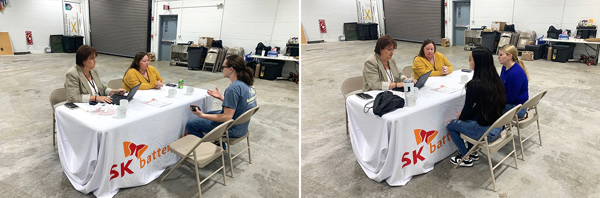 ▲ SK Battery America recruiters conduct on-site interviews with veteran applicants at a career fair held at the National Guard Armory in Hartwell, Georgia, in December 2022.