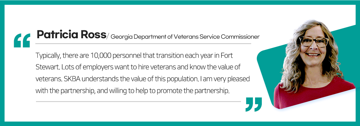 SKBA has been attending career fairs at military installations to share information about potential career opportunities and help transition to civilian careers. The company is collaborating with organizations including The Manufacturing Institute, Fort Stewart Heroes MAKE America Logistics Program, Work for Warriors Georgia, Veterans Education Career Transition Resource, Georgia Department of Labor, and the local post for the American Legion to connect military families to SKBA.