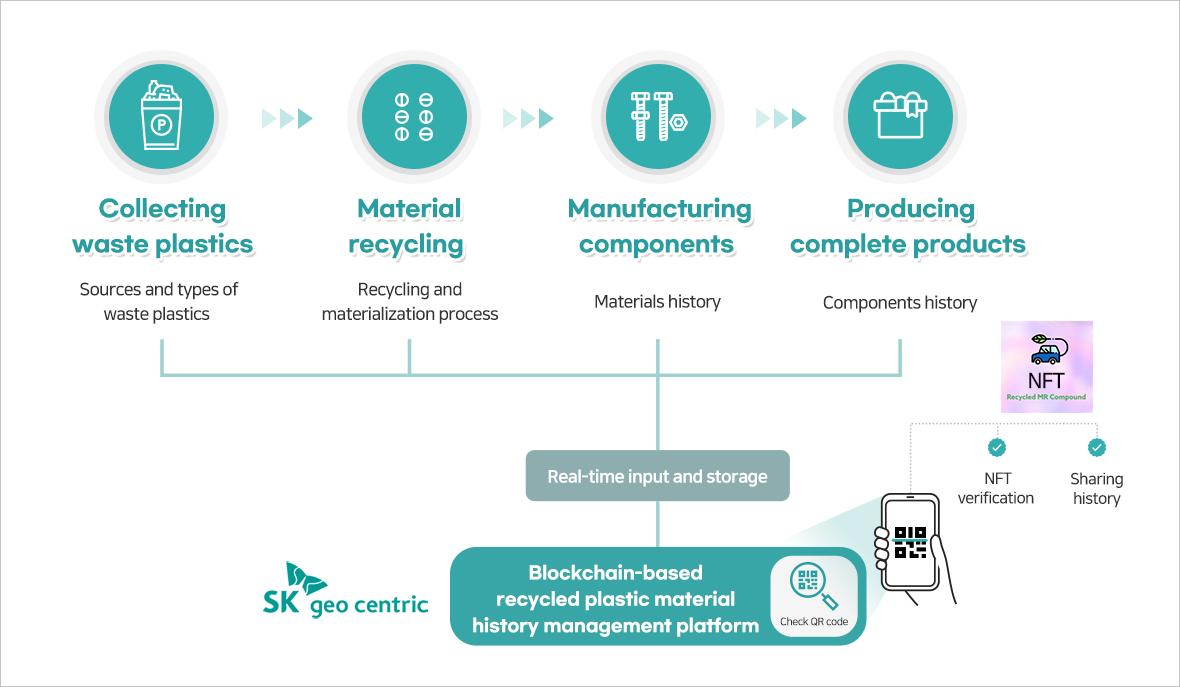 SK Geo Centric has introduced Korea’s first platform utilizing “blockchain technology” for recording and tracking the history of recycled plastic materials. By leveraging the tamper-proof nature of blockchain, it aims to ensure that customers can rest assured when using recycled plastic materials and expand the materials’ range of use.