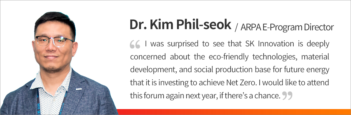 After Dr. Kim’s presentation was the panel discussion. The contents of each session took place on the first day were summarized and shared, followed by free discussion and Q&A time. It was also a time to recall and emphasize the meaning and value of SK Innovation’s New Green Portfolio strategy, and resolve to act together.