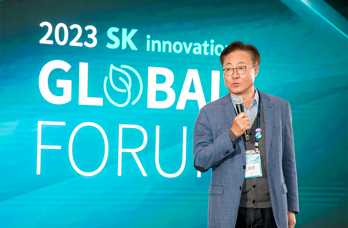 ▲ Vice Chairman & CEO of SK Innvoation Kim Jun delivers the opening speech at 2023 SK Innovation Global Forum
