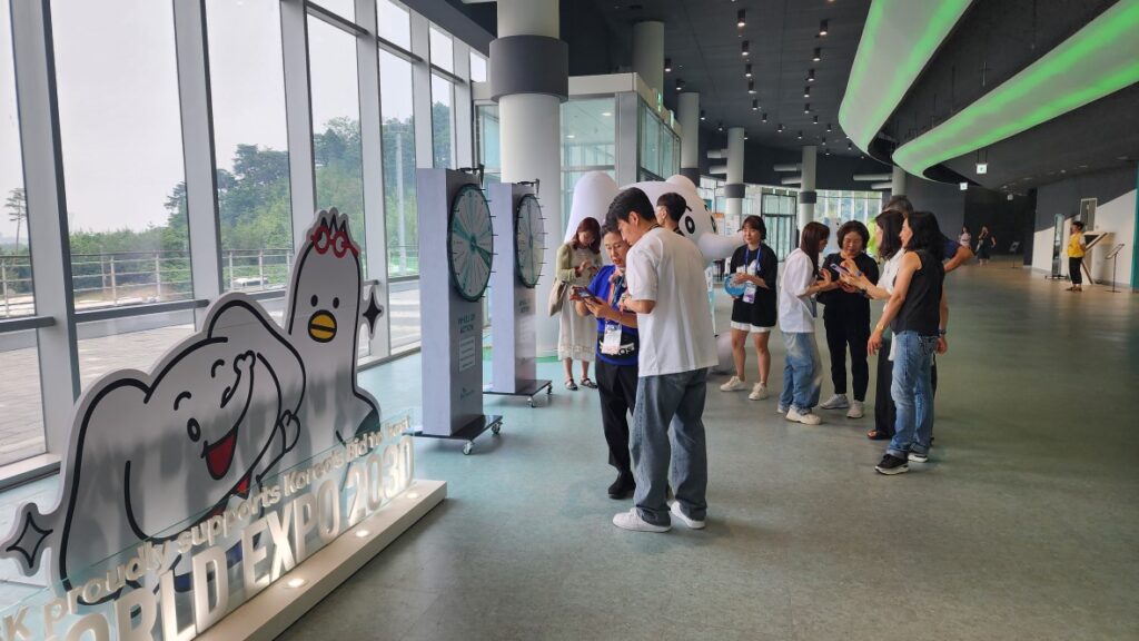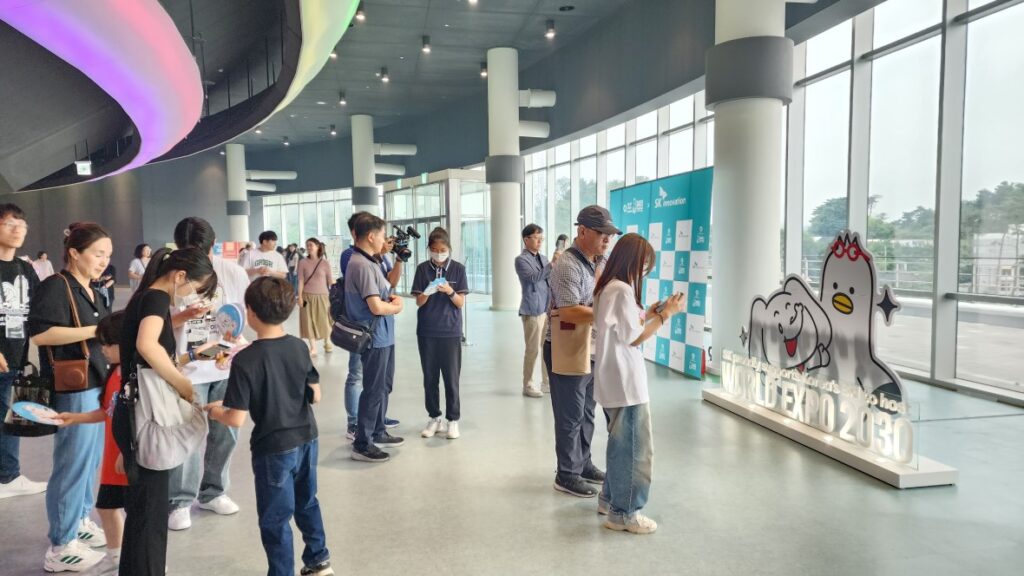 ▲ Participants and visitors of the World Choir Games Gangneung 2023 took photos and joined events at the SK Innovation’s booth, dedicated to promote Busan’s bid to host World Expo 2030, set up at the venue.