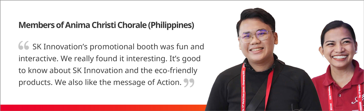 SK Innovation, which has been active in various activities to support local communities, is participating as an official sponsor of this event. On the first day of the World Choir Games 2023, the company operated a booth at the main venue of the event in Gangneung arena to promote Busan’s bid to host World Expo 2030.