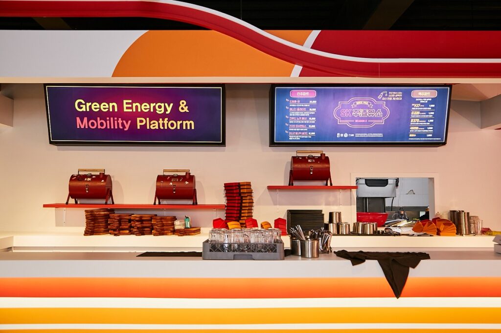 Upon stepping inside the SK Liquor Station, a world of captivating elements awaits. As you make your way through the entrance, your attention will be drawn to a model that resembles a complex facility. Upon closer examination, you’ll see that this model represents the “Siwha Industrial Eco-friendly Complex Station.” It symbolizes the future endeavors of SK Energy’s in-house independent company, SK Energy P&M CIC, which takes charge of the company’s platform and marketing strategies. P&M CIC actively operates in the energy solution sector, leveraging petroleum marketing assets like gas stations and charging stations to generate and supply eco-friendly energy in areas with high power consumption. Their plans include further expansion of fuel cell and solar power installations at gas stations nationwide, along with the addition of diverse mobility services catering to eco-friendly vehicle owners, such as electric vehicle charging and car wash facilities. Through this model, the visionary plans and aspirations of P&M CIC are vividly displayed, offering a glimpse into their future blueprint.