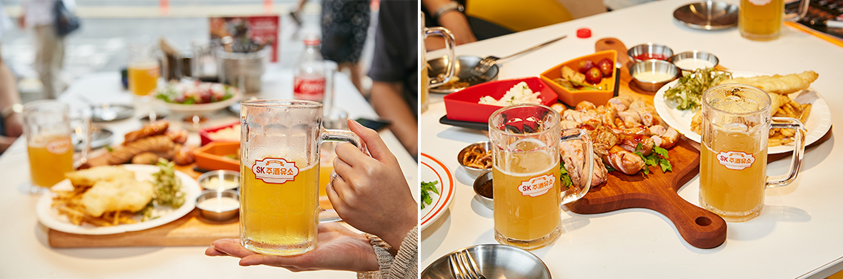 ▲ A variety of beer and food that you can enjoy at the SK Liquor Station pop-up store.