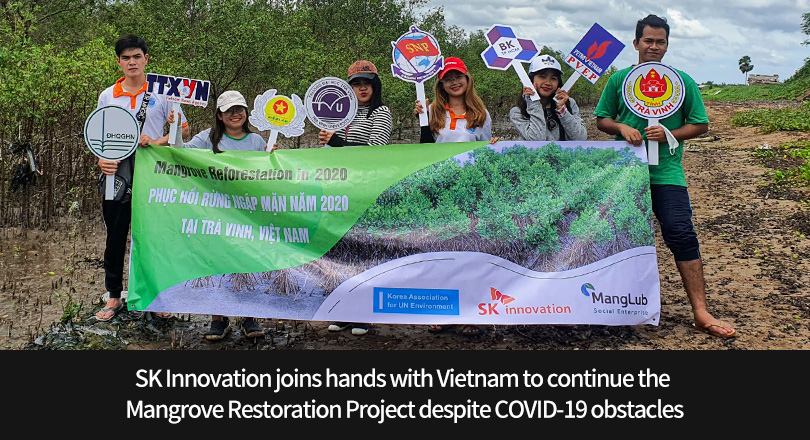 SK Innovation continues to make efforts to restore the mangrove in Vietnam, cooperating with partners of the Vietnam Social Value Alliance during the COVID-19 pandemic.