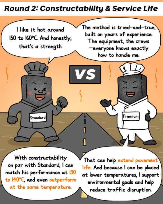 Building on this evolution, the competition for the title of “Ultimate Asphalt” is entering its final stage. Standard Asphalt and Premium Asphalt—are set for a closely contested showdown, decided across two key evaluation areas: Moisture Resistance, and Constructability & Service Life.