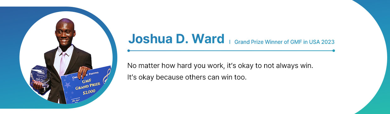 ▲ Joshua D.Ward, the Grand Prize Winner of GMF in USA 2023 (second from left) took a commemorative photo with the organizers.